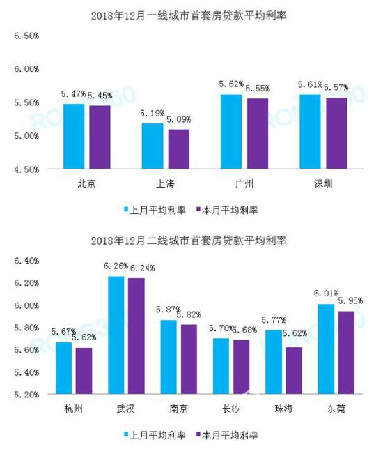 2018年12月一線、二線城市首套房貸款平均利率 數(shù)據(jù)來(lái)源:融360大數(shù)據(jù)研究院