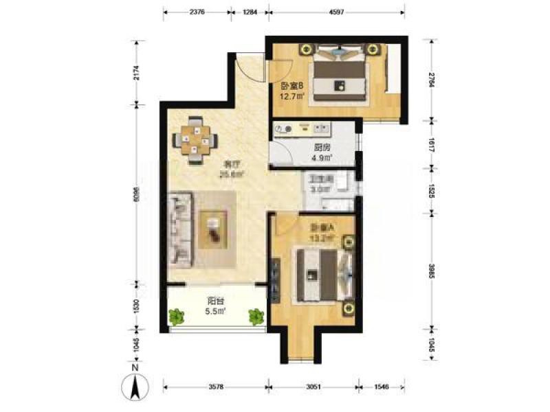 2室2廳1衛(wèi)88平米